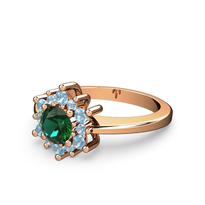 Akuamarin ve yeşil kuvars 18 ayar rose altın yüzük