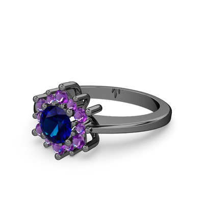 Ametist ve lab safir 925 ayar siyah rodyum kaplama gümüş yüzük