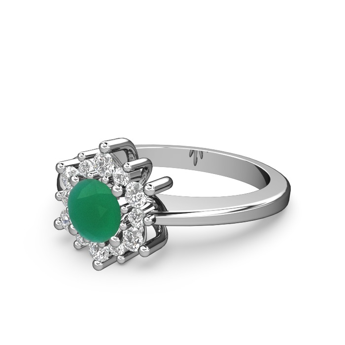 Beyaz zirkon ve kök zümrüt 18 ayar beyaz altın yüzük