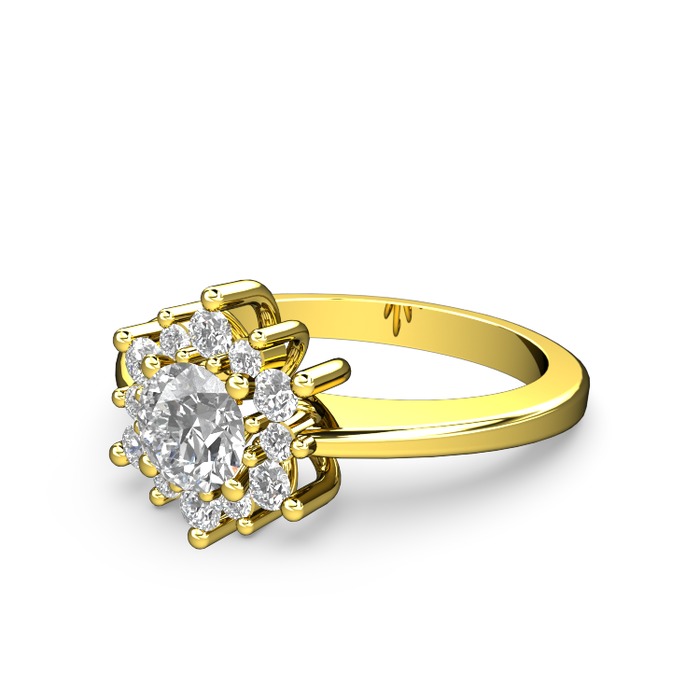 Beyaz zirkon ve swarovski 925 ayar altın kaplama gümüş yüzük