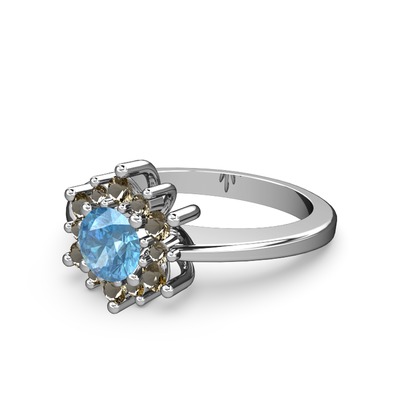 Dumanlı kuvars ve akuamarin 18 ayar beyaz altın yüzük
