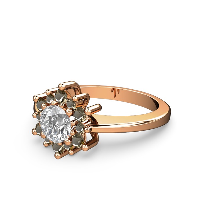 Dumanlı kuvars ve beyaz zirkon 18 ayar rose altın yüzük
