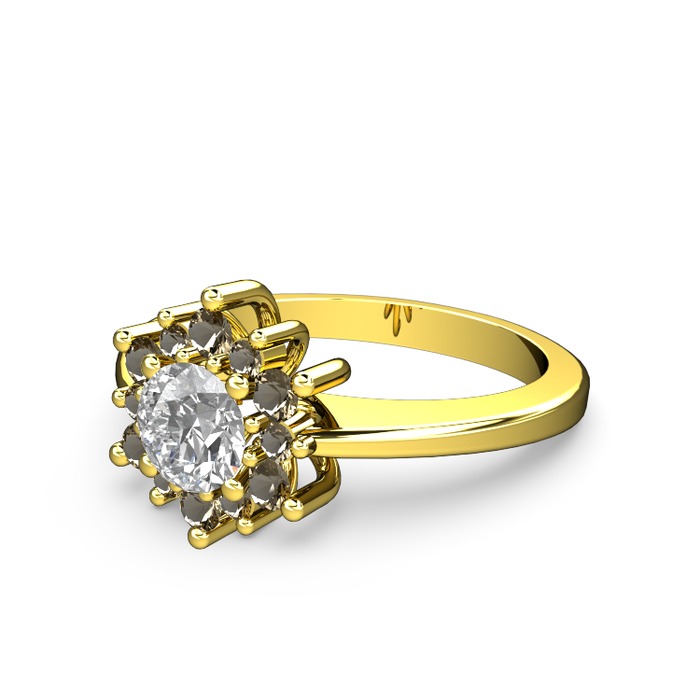 Dumanlı kuvars ve beyaz zirkon 8 ayar altın yüzük