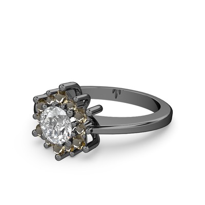 Dumanlı kuvars ve beyaz zirkon 925 ayar siyah rodyum kaplama gümüş yüzük