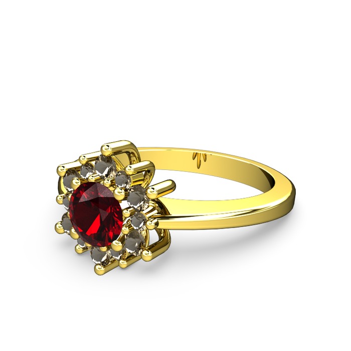 Dumanlı kuvars ve garnet 925 ayar altın kaplama gümüş yüzük