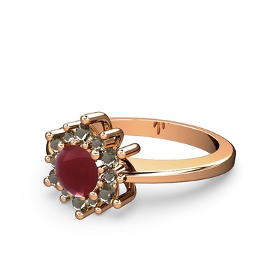 Dumanlı kuvars ve kök yakut 14 ayar rose altın yüzük