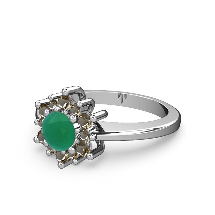 Dumanlı kuvars ve kök zümrüt 8 ayar beyaz altın yüzük