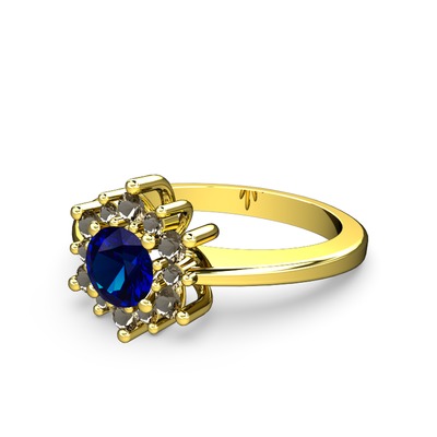 Dumanlı kuvars ve lab safir 925 ayar altın kaplama gümüş yüzük