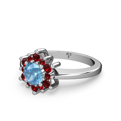 Garnet ve akuamarin 18 ayar beyaz altın yüzük