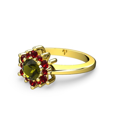 Garnet ve peridot 925 ayar altın kaplama gümüş yüzük