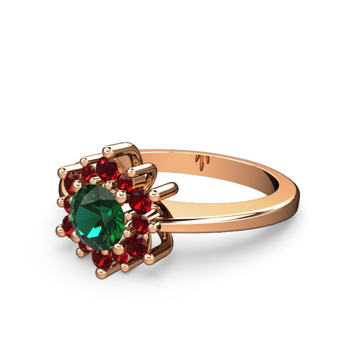 Garnet ve yeşil kuvars 18 ayar rose altın yüzük