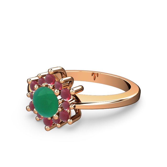Kök yakut ve kök zümrüt 14 ayar rose altın yüzük