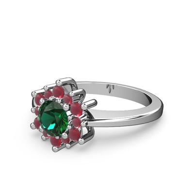 Kök yakut ve yeşil kuvars 18 ayar beyaz altın yüzük