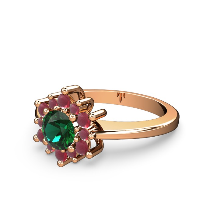 Kök yakut ve yeşil kuvars 8 ayar rose altın yüzük