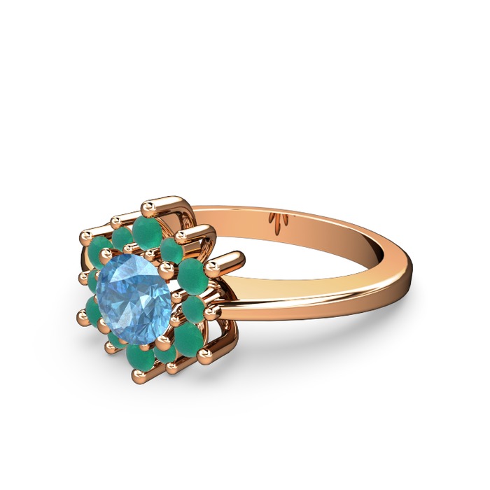 Kök zümrüt ve akuamarin 18 ayar rose altın yüzük