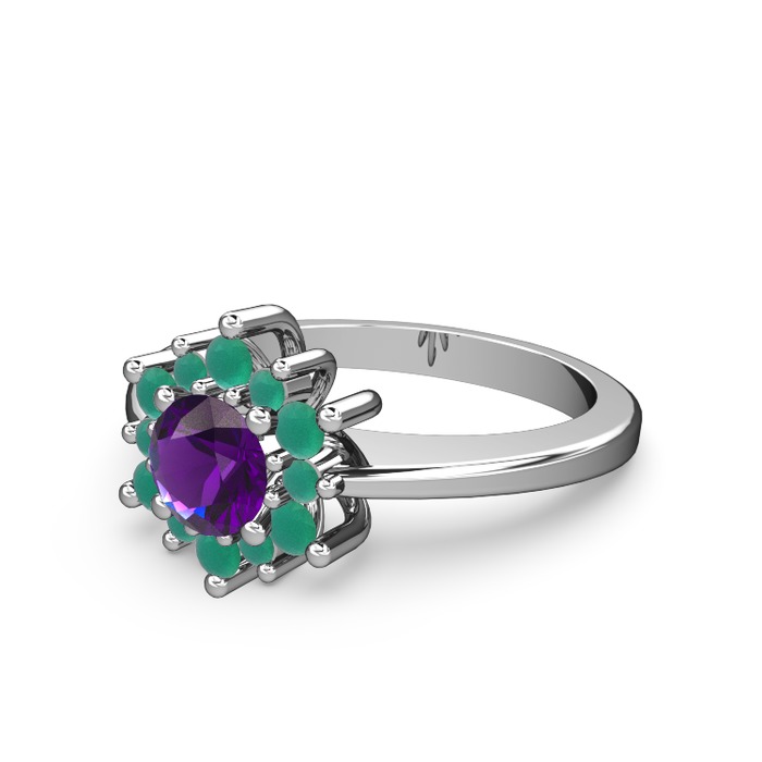 Kök zümrüt ve ametist 14 ayar beyaz altın yüzük