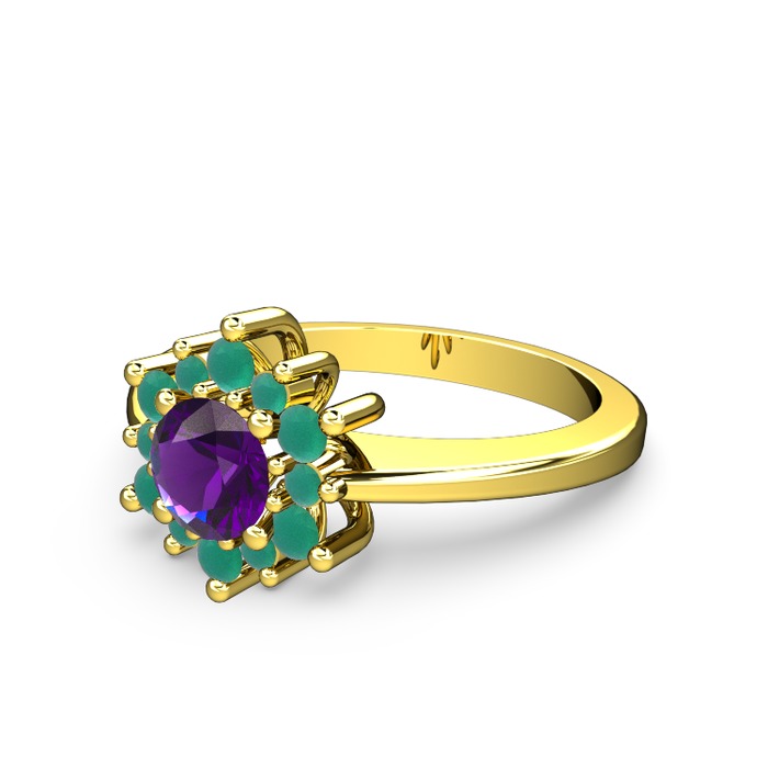 Kök zümrüt ve ametist 8 ayar altın yüzük
