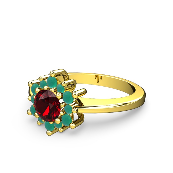 Kök zümrüt ve garnet 18 ayar altın yüzük