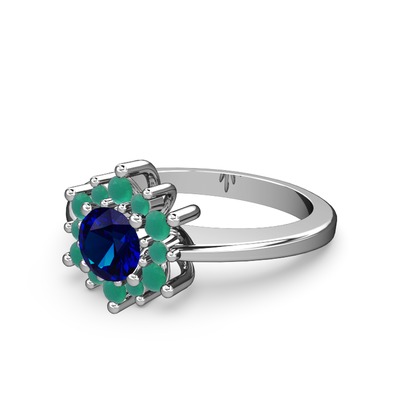 Kök zümrüt ve lab safir 8 ayar beyaz altın yüzük