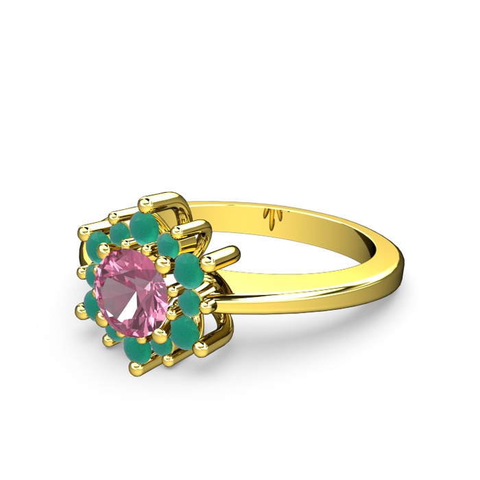 Kök zümrüt ve pembe kuvars 925 ayar altın kaplama gümüş yüzük