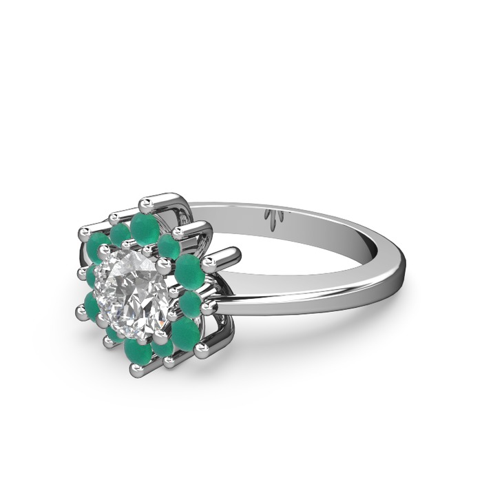 Kök zümrüt ve pırlanta 8 ayar beyaz altın yüzük (0.5 karat)