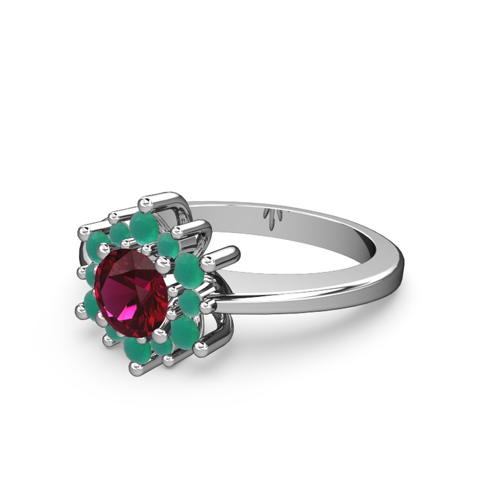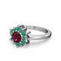 Kök zümrüt ve rodolit garnet 18 ayar beyaz altın yüzük