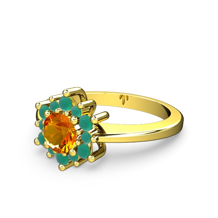Kök zümrüt ve sitrin 18 ayar altın yüzük