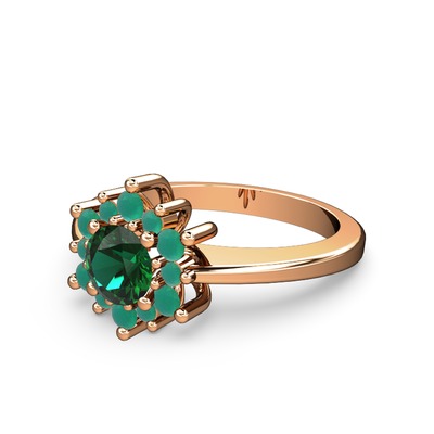 Kök zümrüt ve yeşil kuvars 8 ayar rose altın yüzük