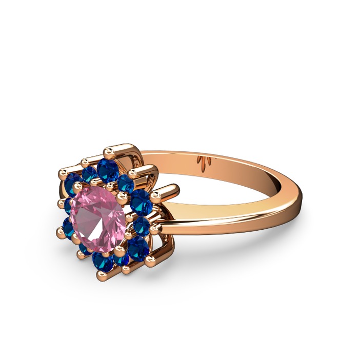 Lab safir ve pembe kuvars 18 ayar rose altın yüzük