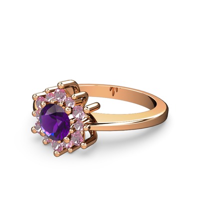 Pembe kuvars ve ametist 14 ayar rose altın yüzük