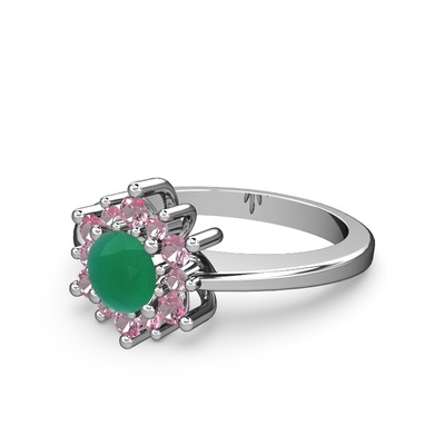 Pembe kuvars ve kök zümrüt 925 ayar gümüş yüzük