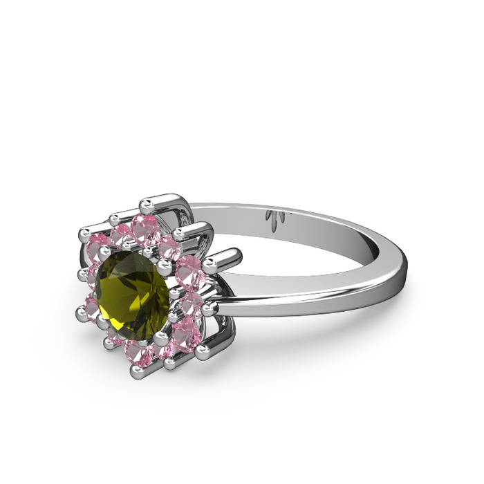 Pembe kuvars ve peridot 8 ayar beyaz altın yüzük