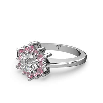 Pembe kuvars ve swarovski 8 ayar beyaz altın yüzük
