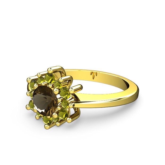 Peridot ve dumanlı kuvars 925 ayar altın kaplama gümüş yüzük