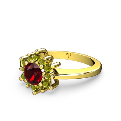 Peridot ve garnet 8 ayar altın yüzük