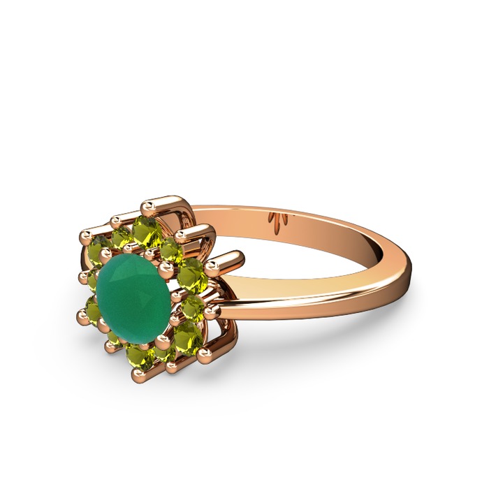 Peridot ve kök zümrüt 925 ayar rose altın kaplama gümüş yüzük