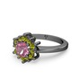 Peridot ve pembe kuvars 925 ayar siyah rodyum kaplama gümüş yüzük