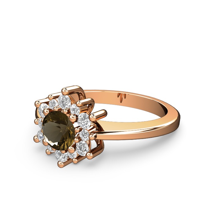 Pırlanta ve dumanlı kuvars 14 ayar rose altın yüzük (0.504 karat)