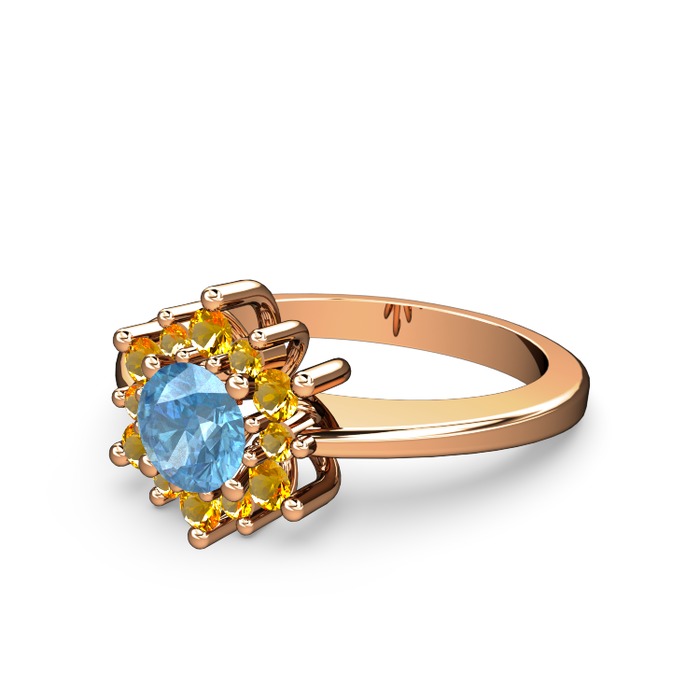Sitrin ve akuamarin 14 ayar rose altın yüzük