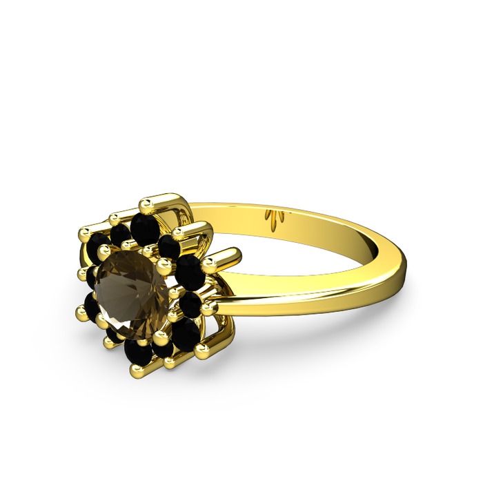 Siyah zirkon ve dumanlı kuvars 925 ayar altın kaplama gümüş yüzük