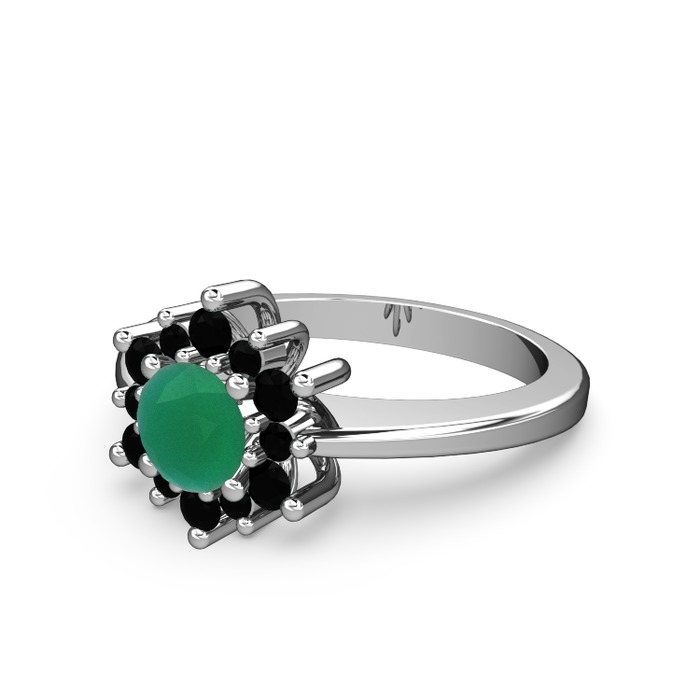 Siyah zirkon ve kök zümrüt 14 ayar beyaz altın yüzük