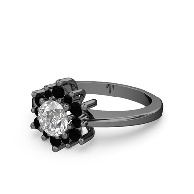 Siyah zirkon ve swarovski 925 ayar siyah rodyum kaplama gümüş yüzük