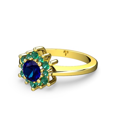 Yeşil kuvars ve lab safir 14 ayar altın yüzük