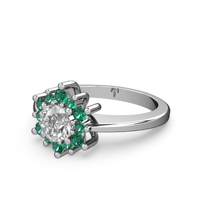 Yeşil kuvars ve pırlanta 18 ayar beyaz altın yüzük (0.5 karat)