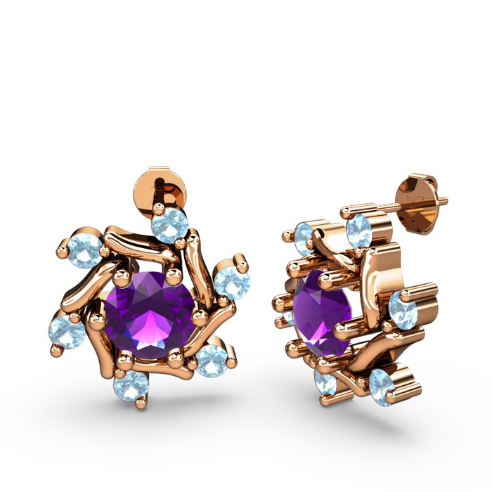 Akuamarin ve ametist 8 ayar rose altın küpe