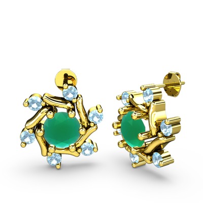 Akuamarin ve kök zümrüt 925 ayar altın kaplama gümüş küpe