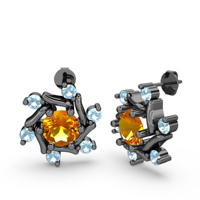 Akuamarin ve sitrin 925 ayar siyah rodyum kaplama gümüş küpe