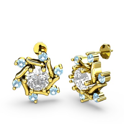 Akuamarin ve swarovski 14 ayar altın küpe