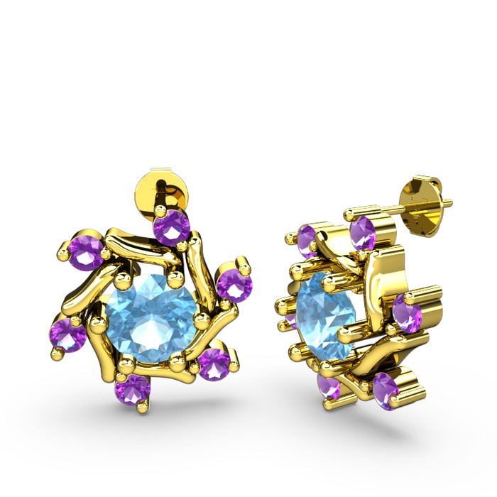 Ametist ve akuamarin 14 ayar altın küpe