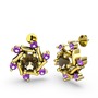 Ametist ve dumanlı kuvars 8 ayar altın küpe